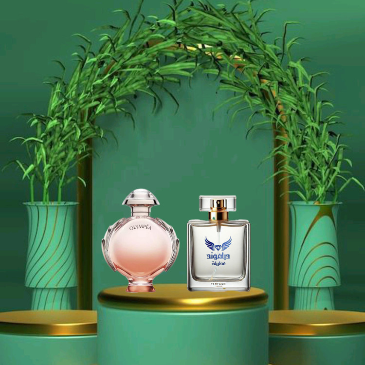المپیا از روحیه ورزشی و رقابت و پیروزی الهام گرفته و ایده طراحیش بر اساس الهه مدرن یونان و تداعی کننده قدرت و پویایی است. طرح شیشه این عطر شیک و جذاب از شکل تاج لورل ایده گرفته شده است .